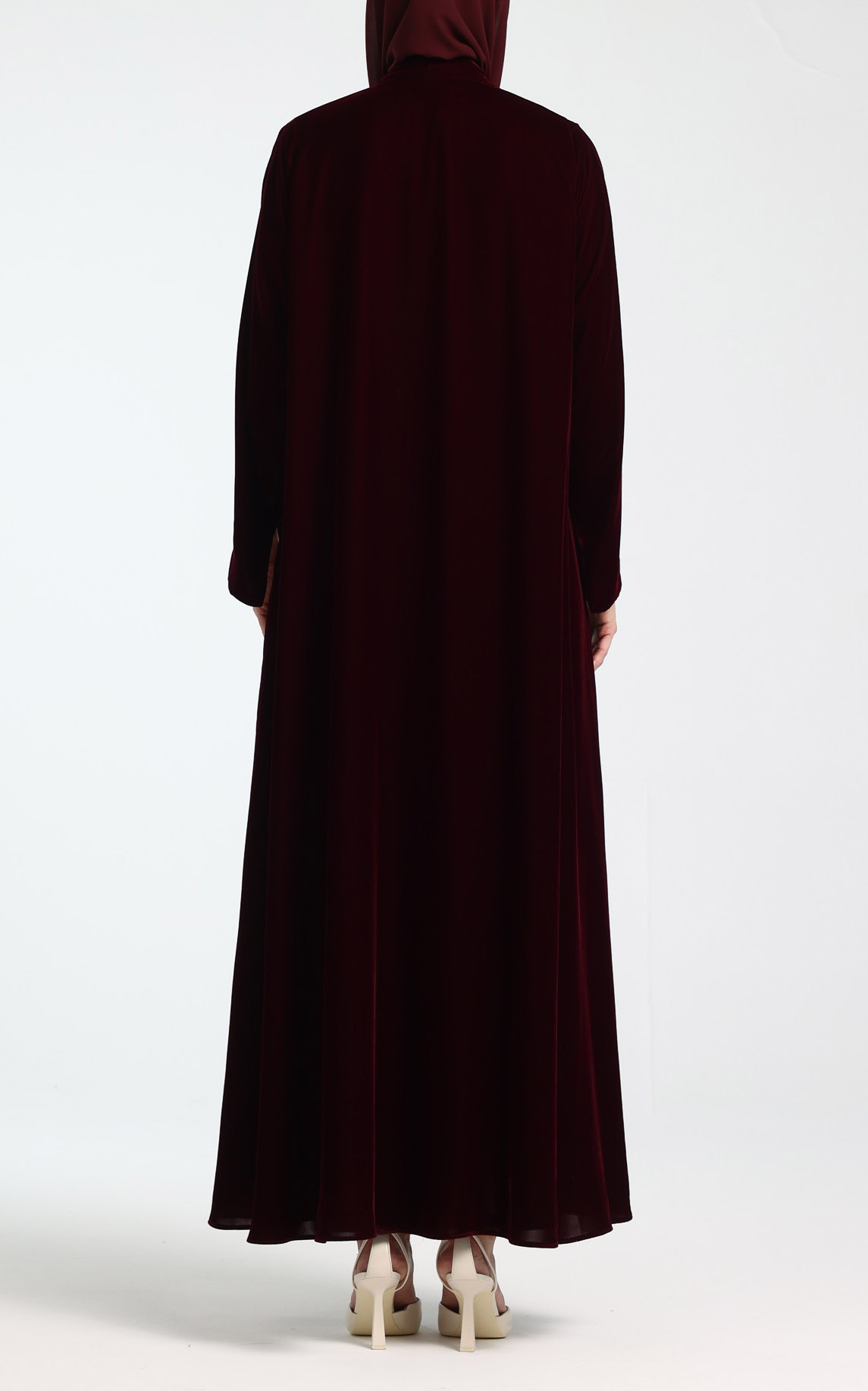 Minimal Printed Silk Velvet Abaya - Maroon